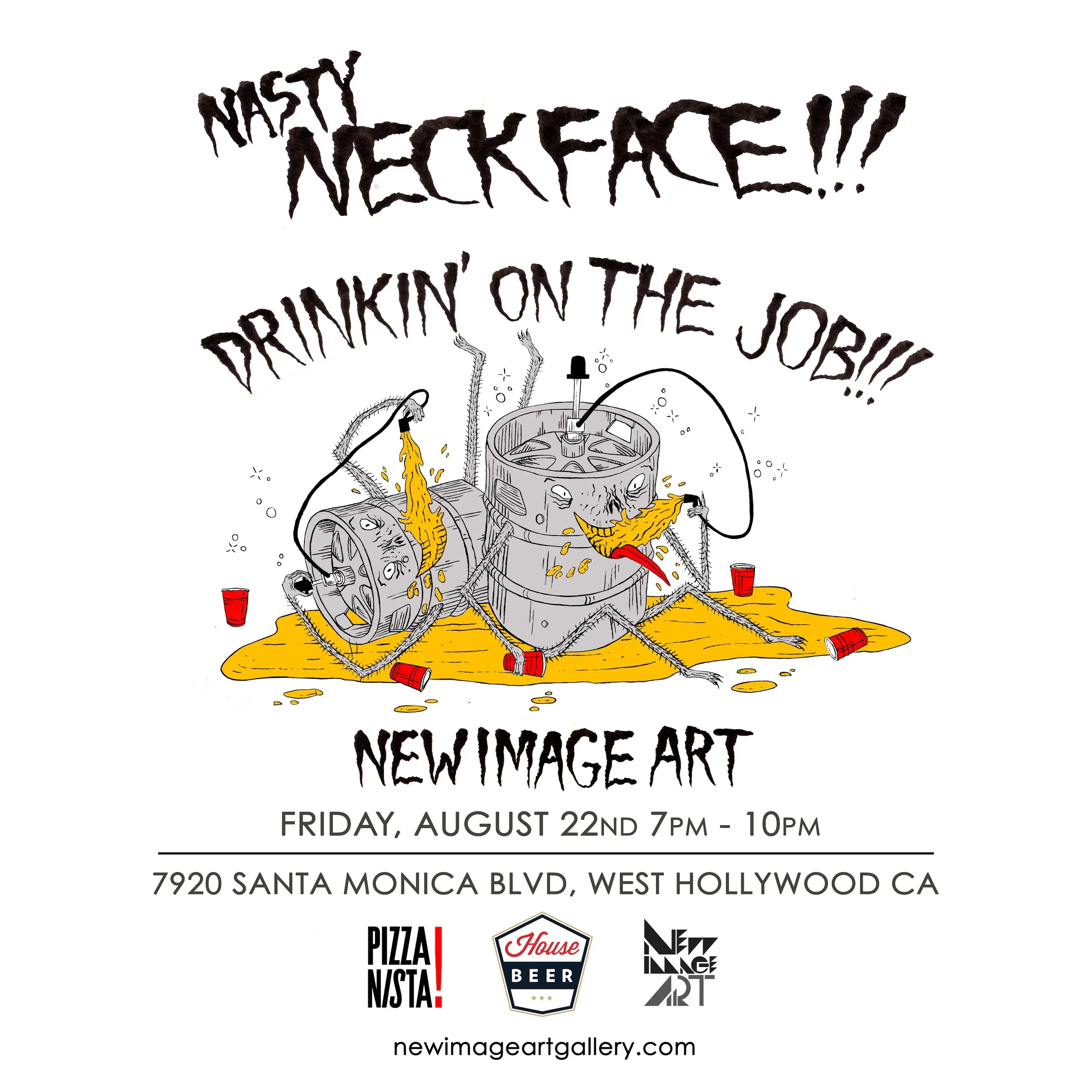 Neckface "Drinkin' On The Job" is open now at New Image Art Gallery in Los Angeles.